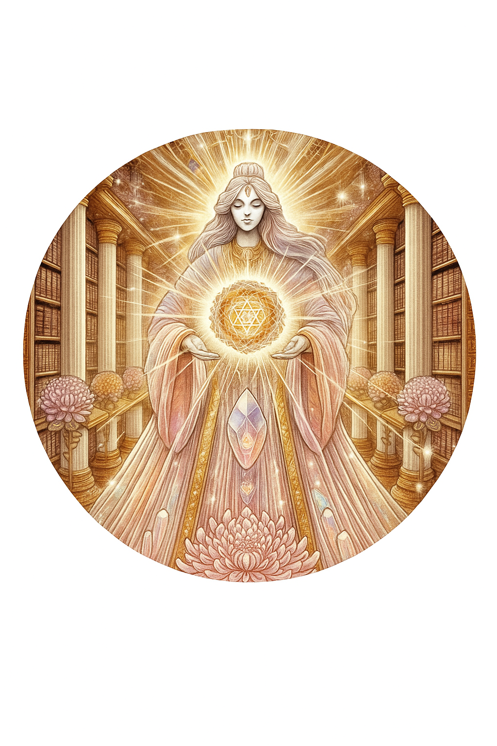 Some say the golden libraries are Atlantean-Lemurian echoes, others feel them as the vaults of Sophia’s dreaming, or the records within the heart's crystal chamber. They are accessible not by striving but by softening. They bloom open when your field vibrates in harmonic alignment with your soul’s original song.